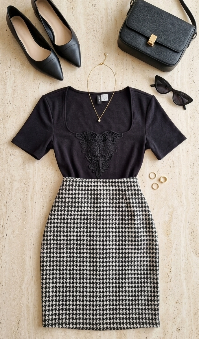 بلوز اسود مع تنورة سايز سمول