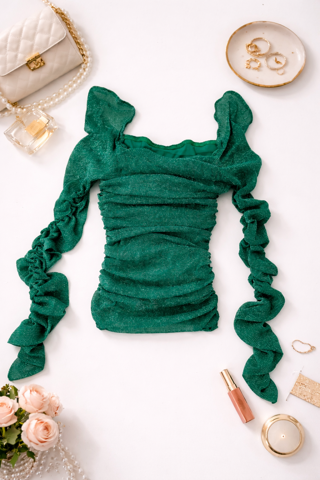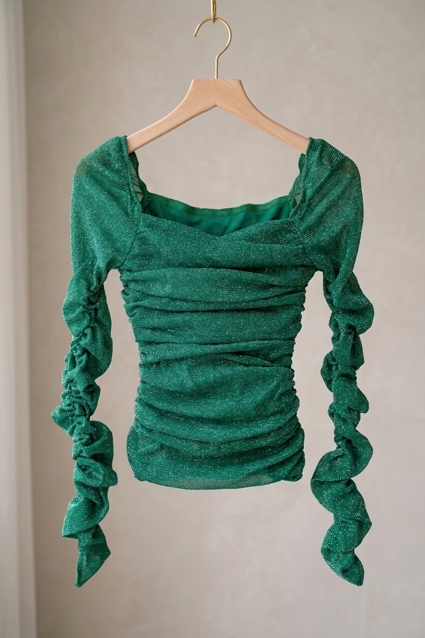 كمية بلوز مع لمعة لون أخضر سايز اكس سمول