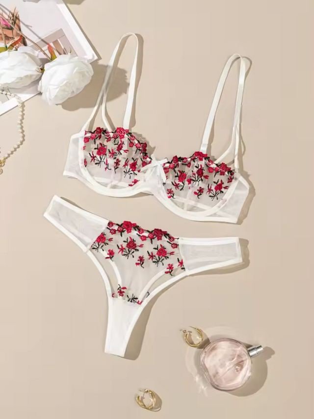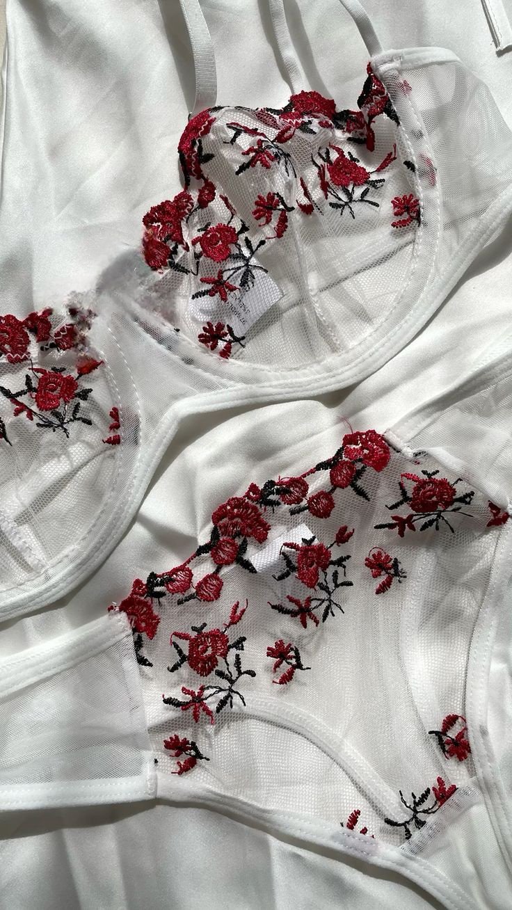 Specification: داخلي قطعتين أبيض بلمسة الورد الحمراء