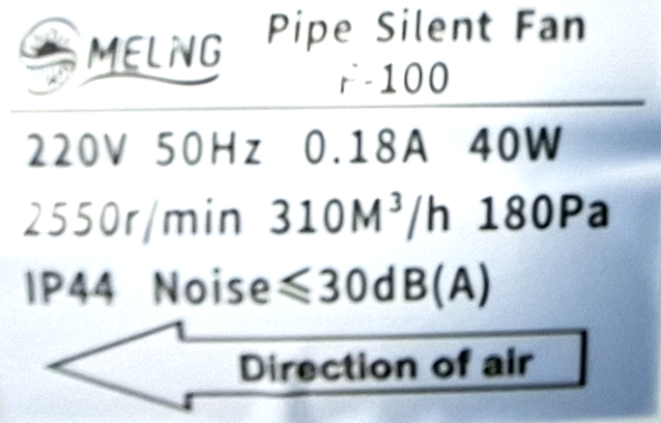 Specification: شفاط 4 انش داخلي صامت HF-100 mm 4 inches In-Line Fan silent