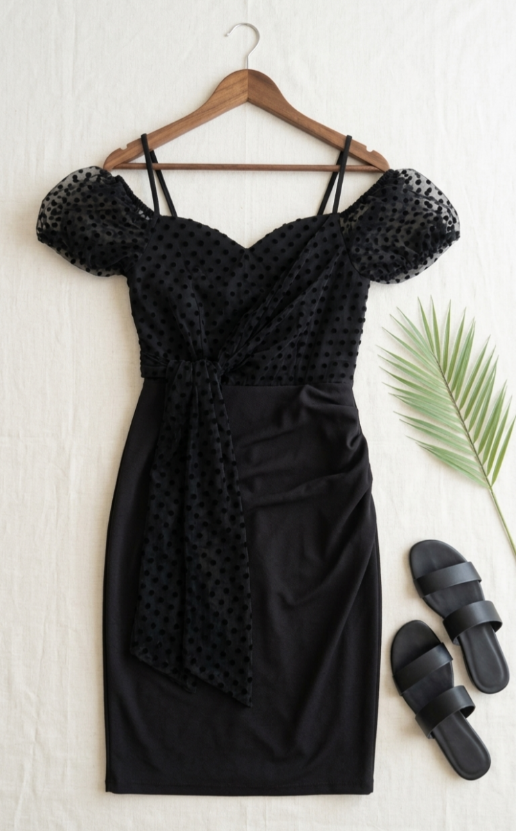 كمية فستان أسود فخم M/L