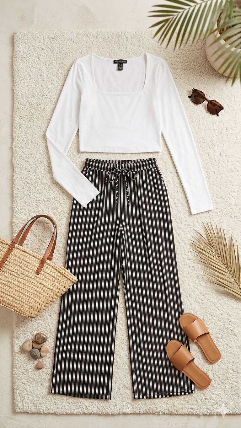 البنطلون قماش صيفي بارد / اسود وأبيض