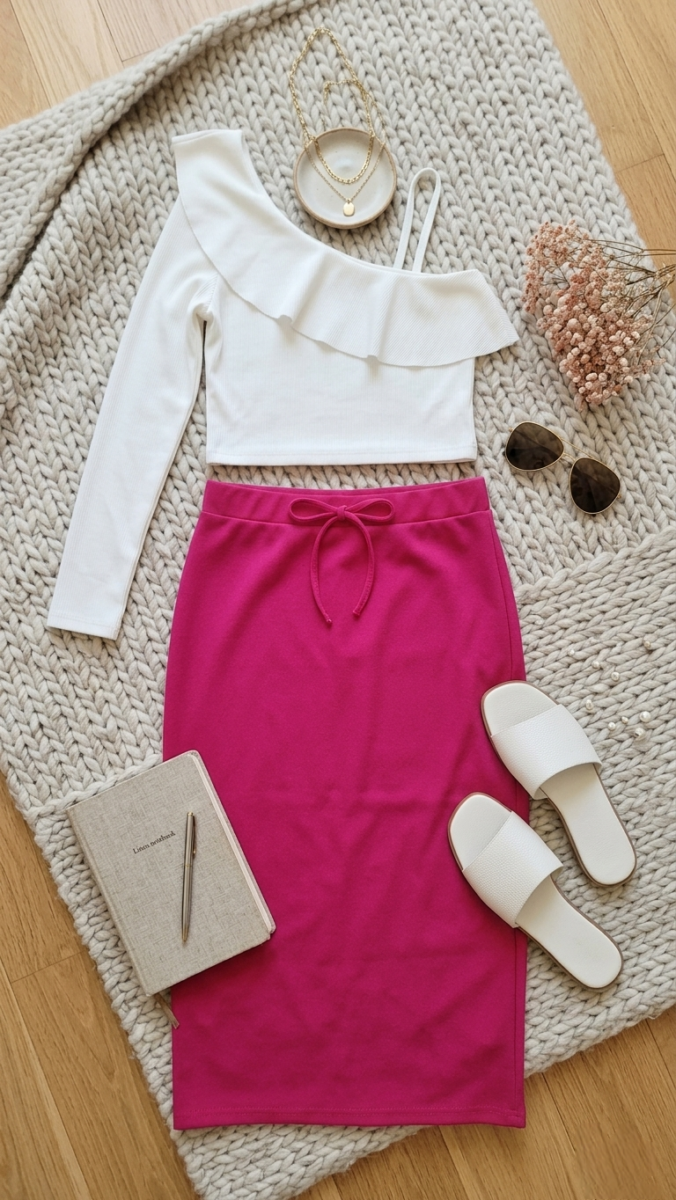 تنورة فوشي للركبة / مفتوحة من الخلف شوي