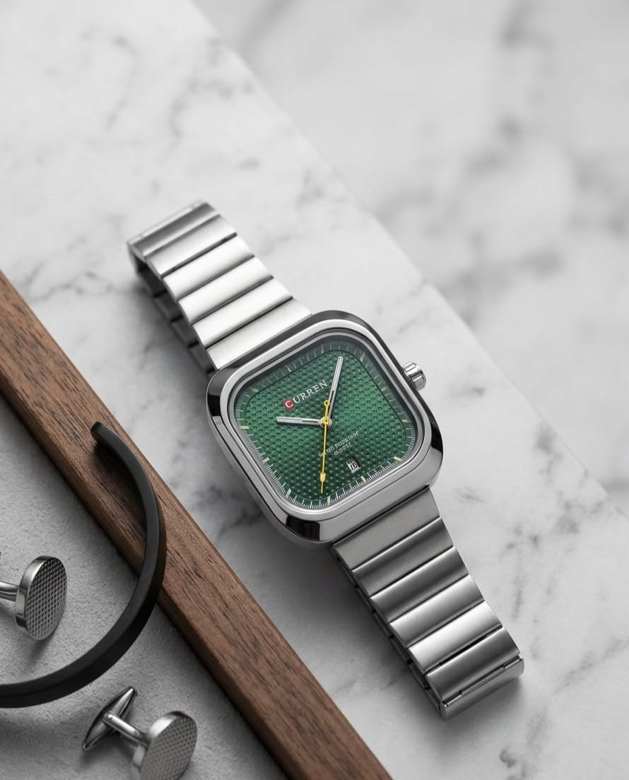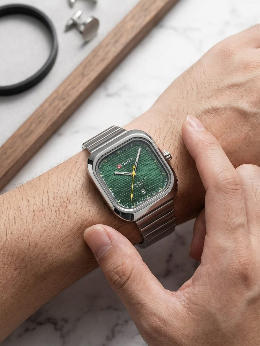 ساعة يد رجالية ماركة CURREN تدمج التصميم الكلاسيكي والعصري مينا اخضر زمردي