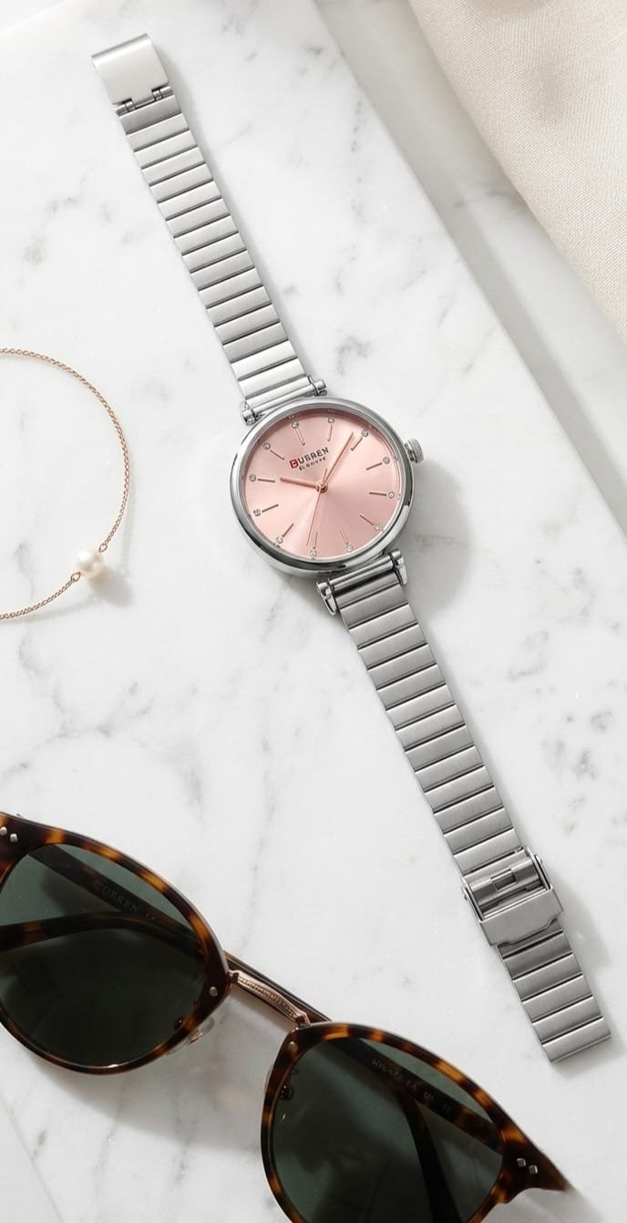 كمية ساعة يد نسائية ماركة CURREN فضية مع لون نود فاخر
